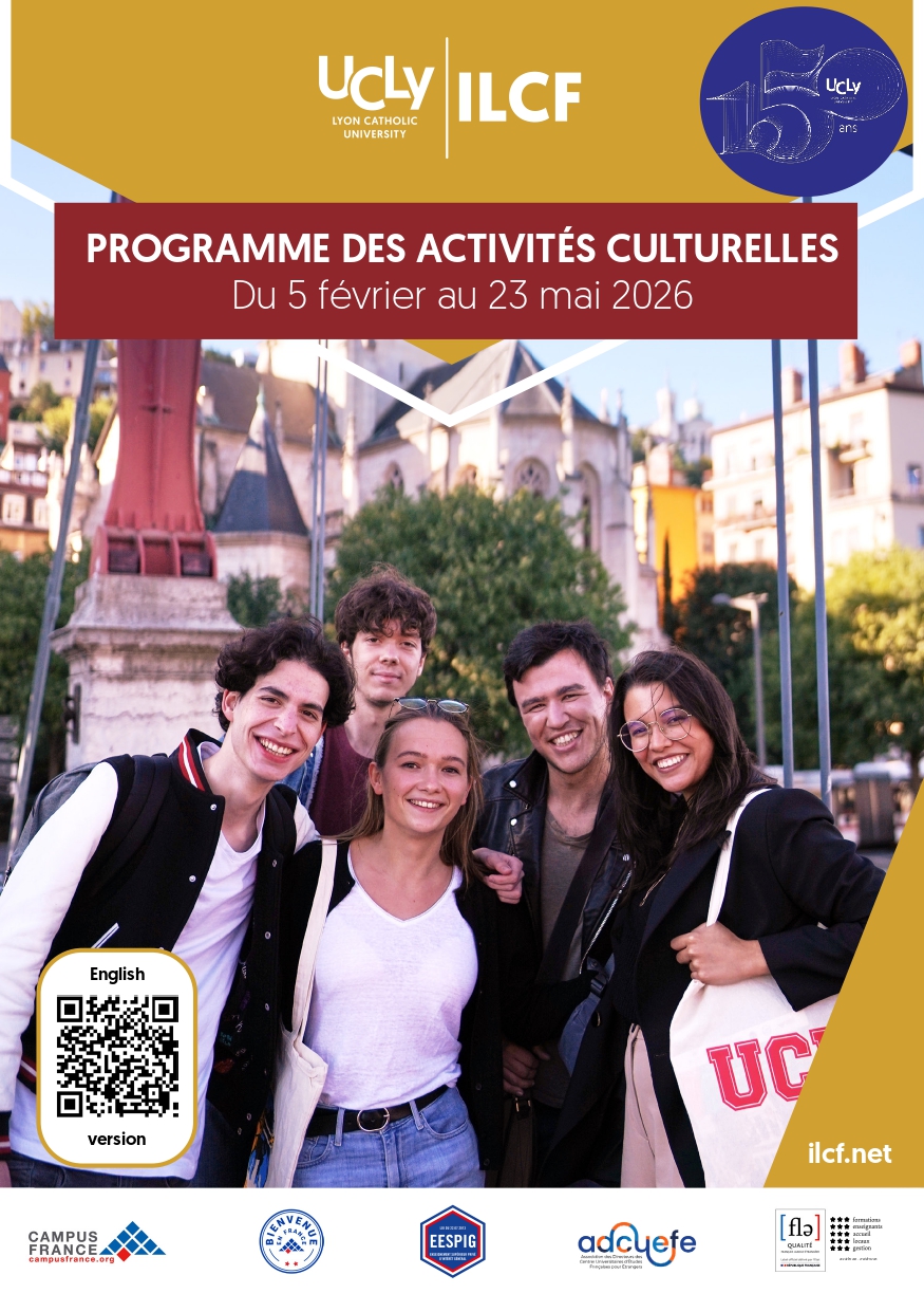 Étudier à l’ILCF, ce n’est pas que suivre des cours et passer des examens, c’est aussi profiter de la culture et de la vie de la ville. C’est pourquoi notre équipe propose un programme culturel enrichissant dans Lyon et ses environs.